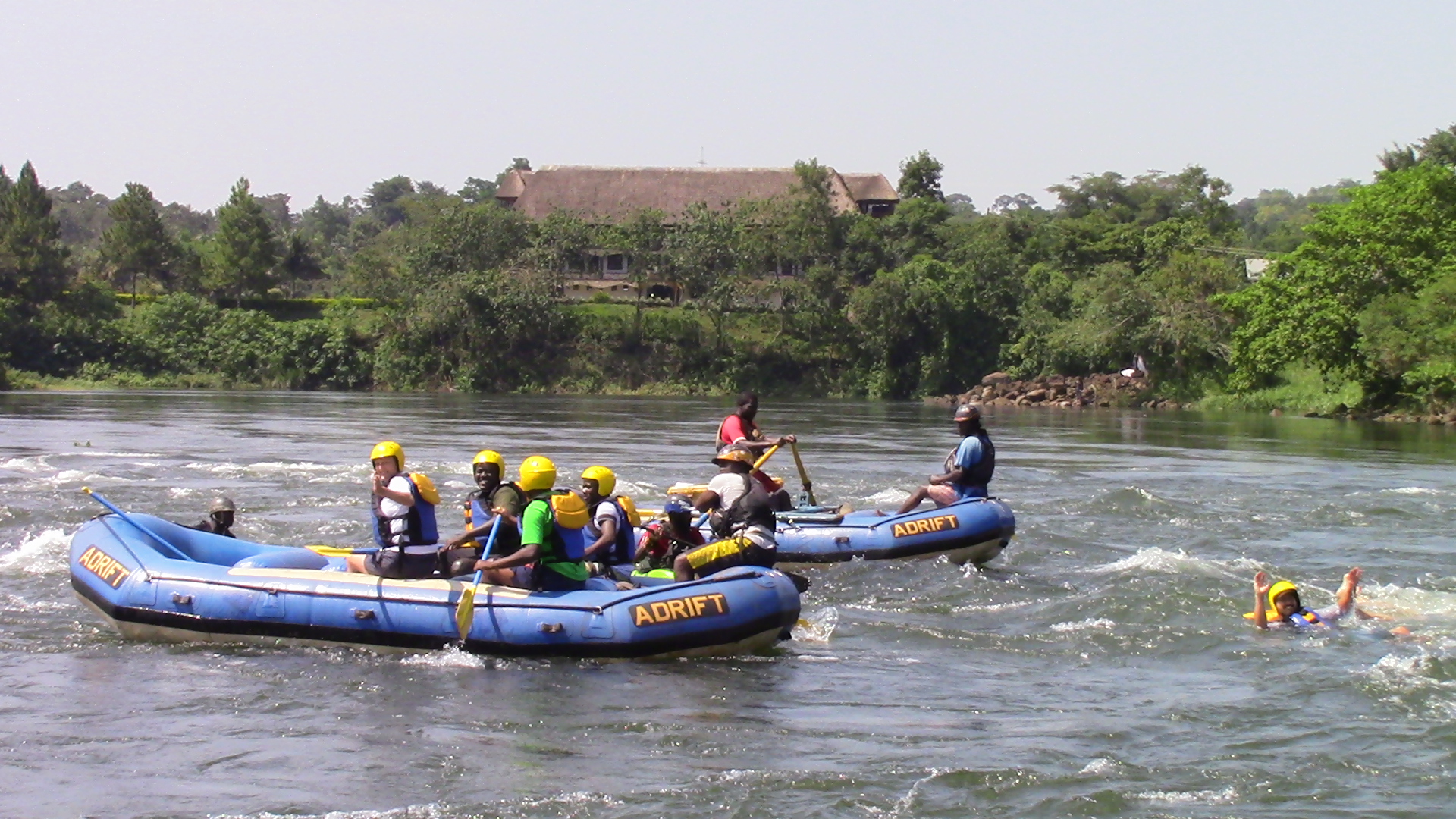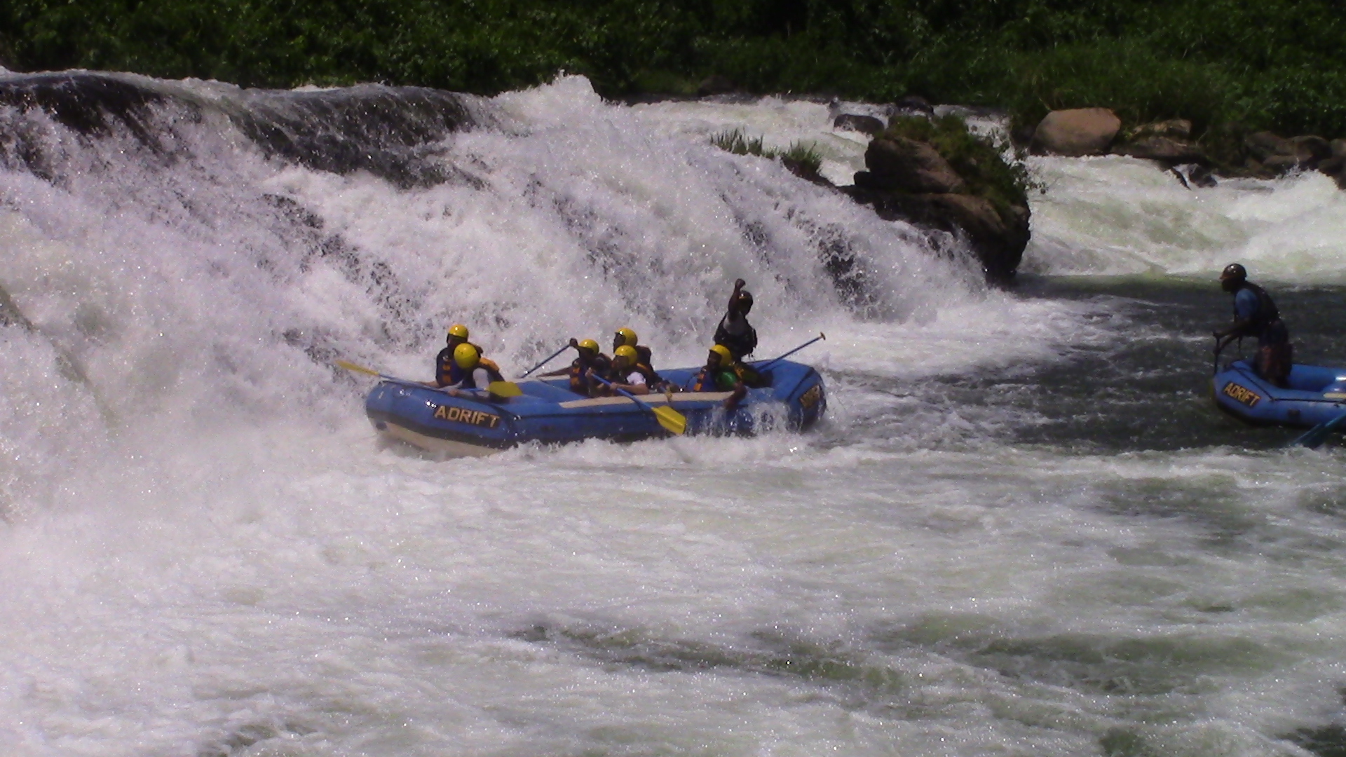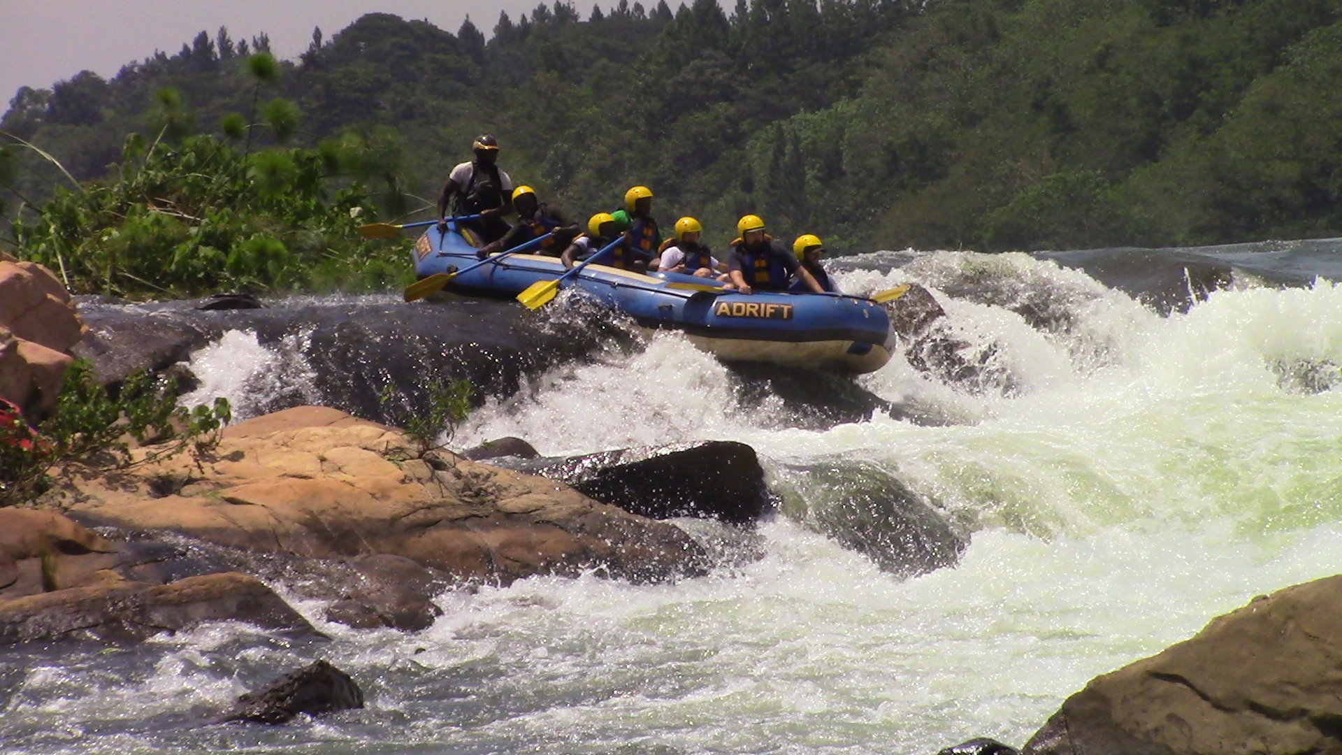 The trip on the water begins slowly and the first few kilometres give the raft guides an opportunity to train their crews fully on all aspects of Nile rafting. The river becomes much more adventures at Bujagali Falls and one major rapid follows swiftly after another for most of the morning. Once the rafts enter Wildwaters Reserve (protects the unique flora and fauna of the mid‐stream islands of the Nile), there is more time between the rough water but the rapids become larger and more spectacular. At Itanda (The Bad Place) the Nile is too powerful for the rafts and so the rafts are taken around the top by land.
